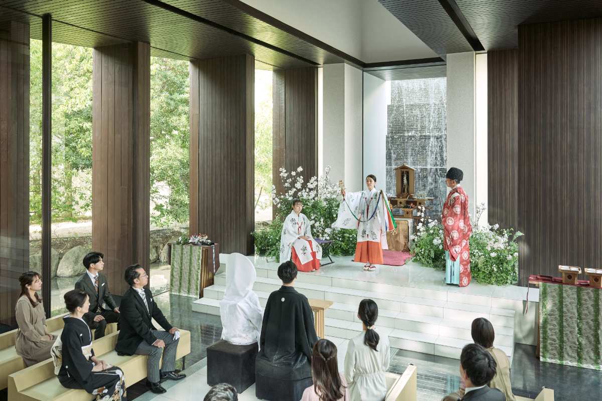 教会式や人前式のほか、神前式も美しくフィットします。
