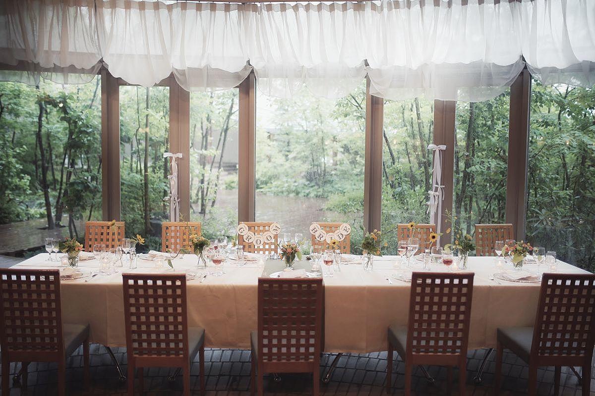 ガラス張りの宴内には陽光が差し込み開放的で、アットホームな挙式が叶います。