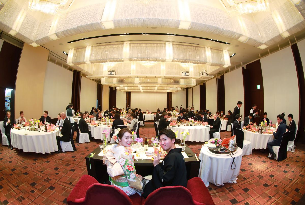 披露宴は、天井高7mのバンケット「KITAHAMA W(収容人数6〜120名)」で行います。