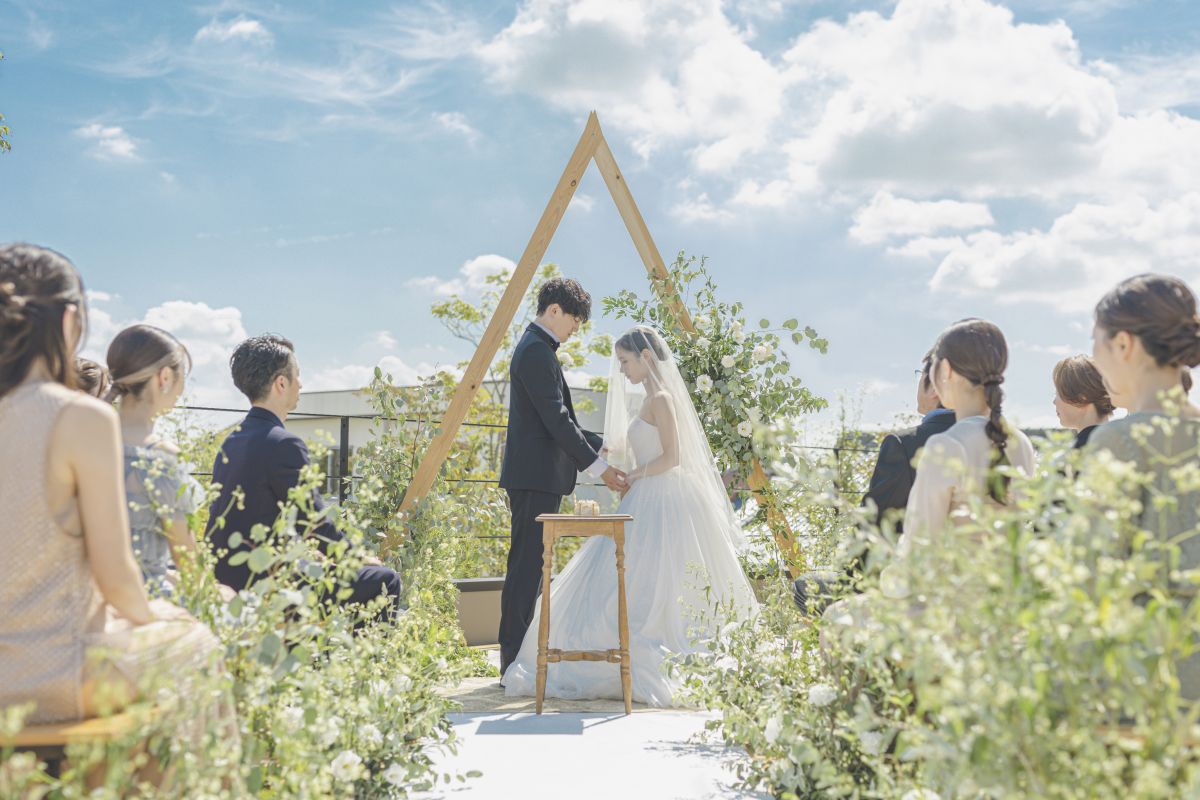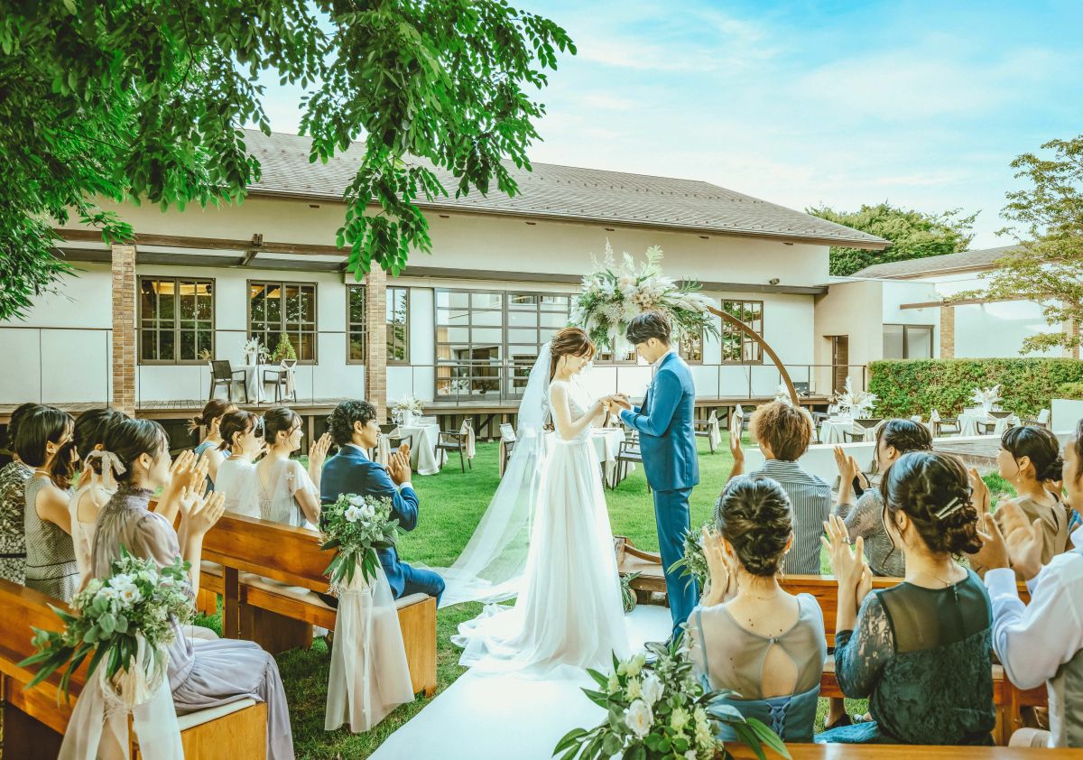 Garden chapelは、青空の下、まるで海外映画に出てくるようなおしゃれで開放的なガーデンウエディングが叶います。
