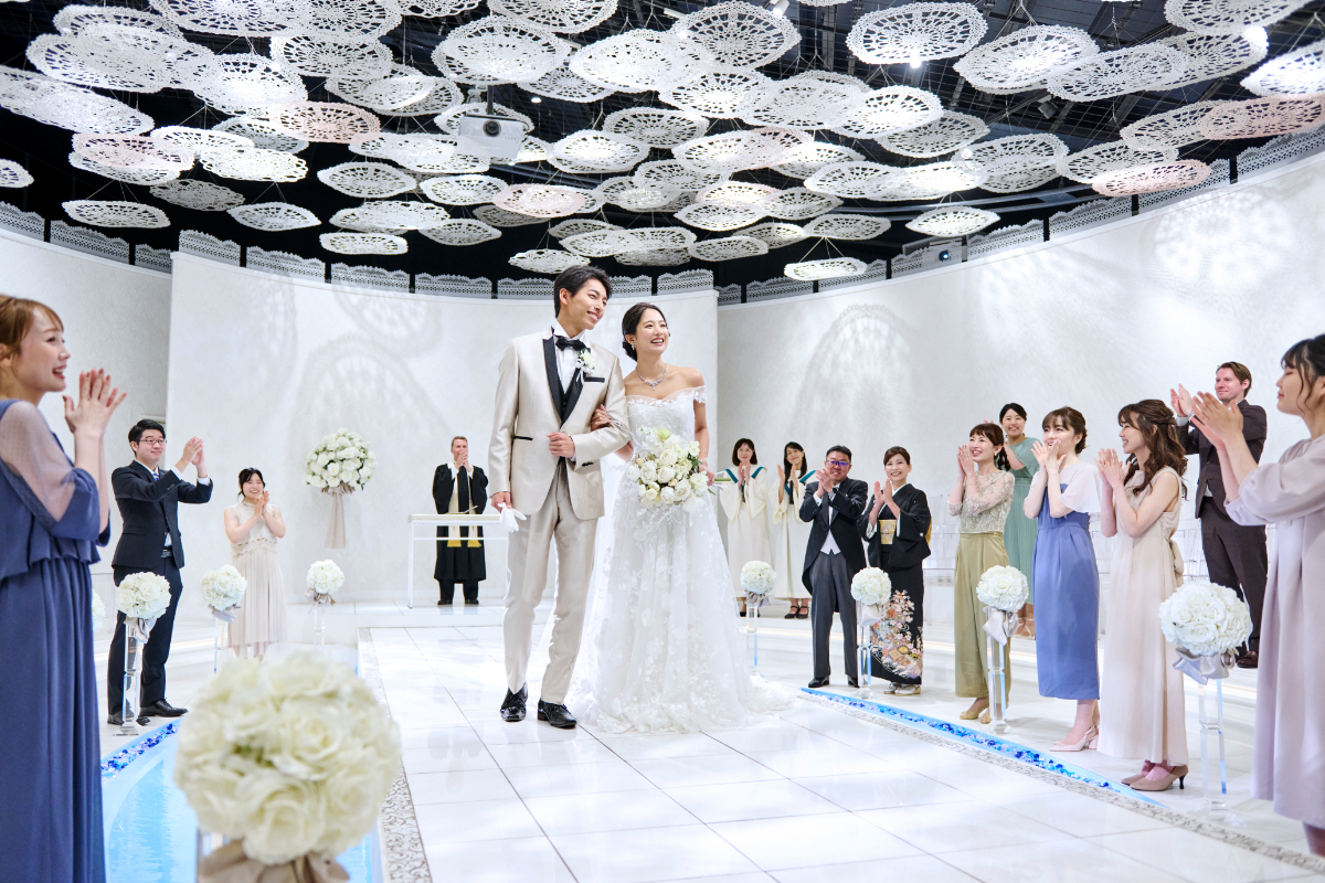 その場にいる全員が、二人の世界観にどっぷり浸ることができるチャペルです。