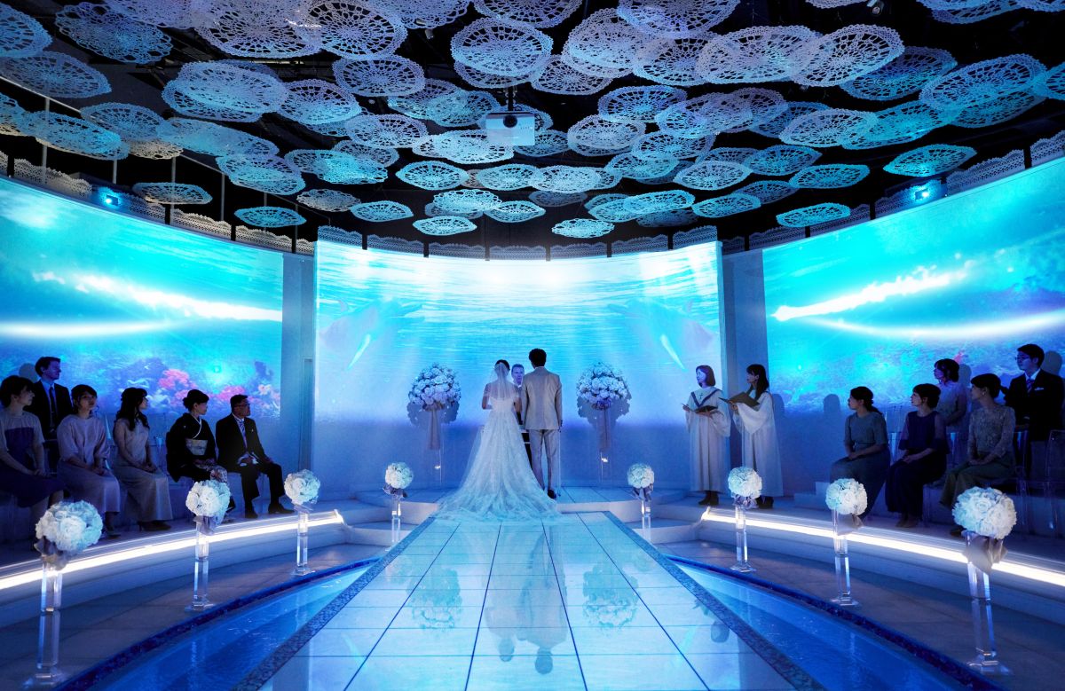 深海に漂うような映像や、オーロラを背に神秘的なセレモニーを叶えるのも◎。