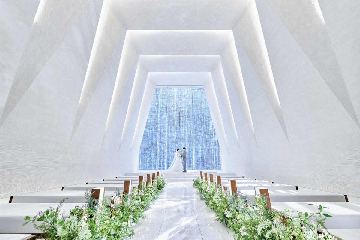 シンプルな空間ながら、同チャペルのインパクトは抜群。印象的な洗練空間で挙式がしたい人は、ぜひチェックしてみてくださいね。