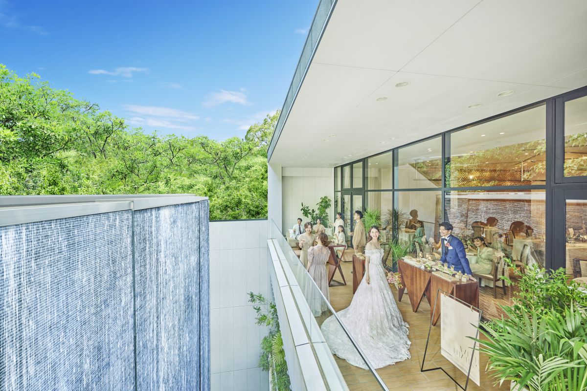 専用のテラスもまた、緑と一体化したナチュラル空間。デザートビュッフェをはじめ、多彩な演出を自由に楽しむことができます。