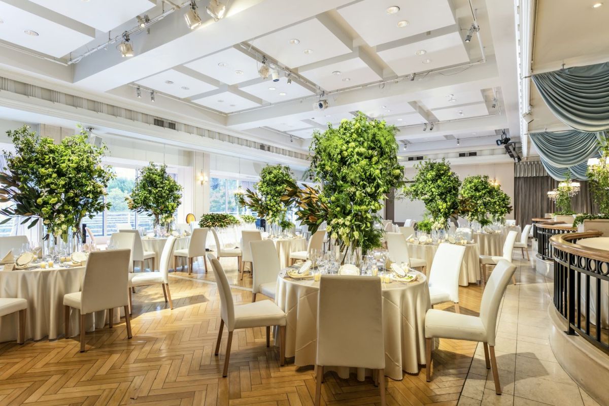 格調高い洋館を思わせる「クリスタルボールルーム」は、会場内の大きな窓から緑が望め、大自然に包まれているかのような心癒される時間が過ごせます。