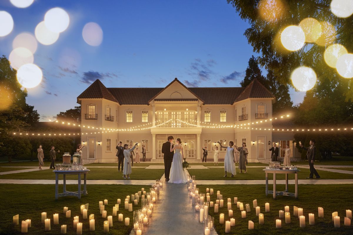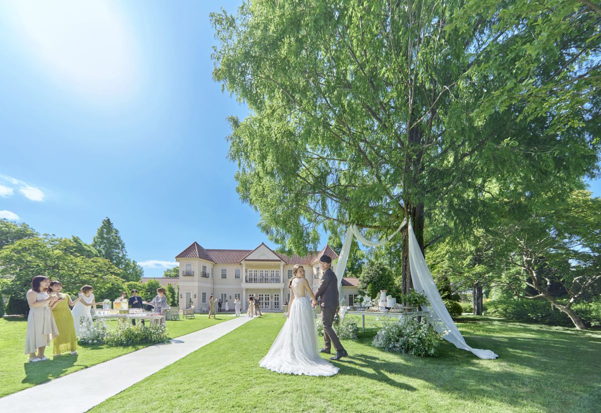 空と緑に囲まれた3,000坪の広大な敷地を貸切って、まるで外国映画のような素敵な1日をお過ごしいただけます。