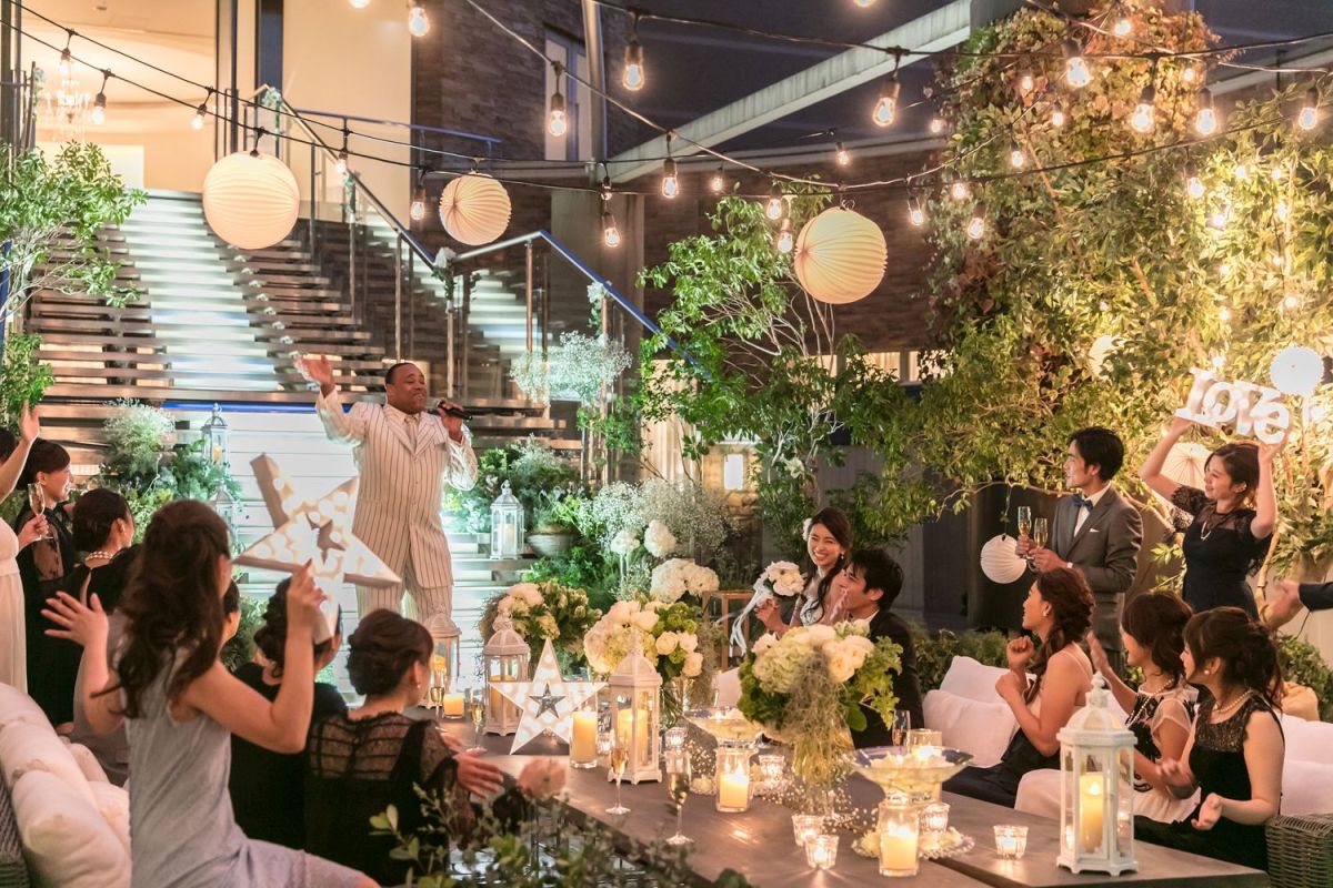 緑や青空を感じる開放感あふれる空間で、ゲストとの歓談や写真撮影も楽しめますよ。