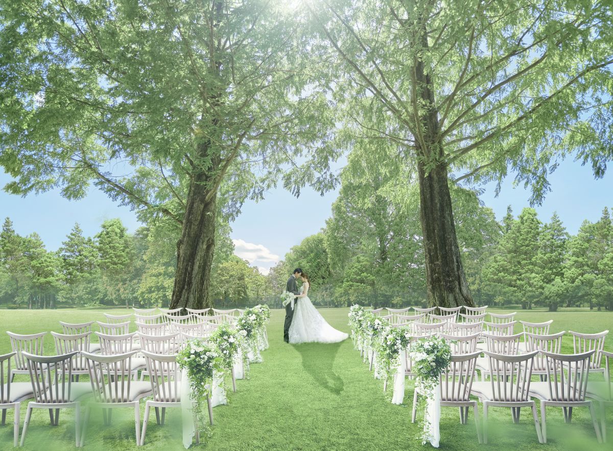ナチュラルウエディング会場のPoint①緑豊かなガーデンで自由な演出が楽しめる