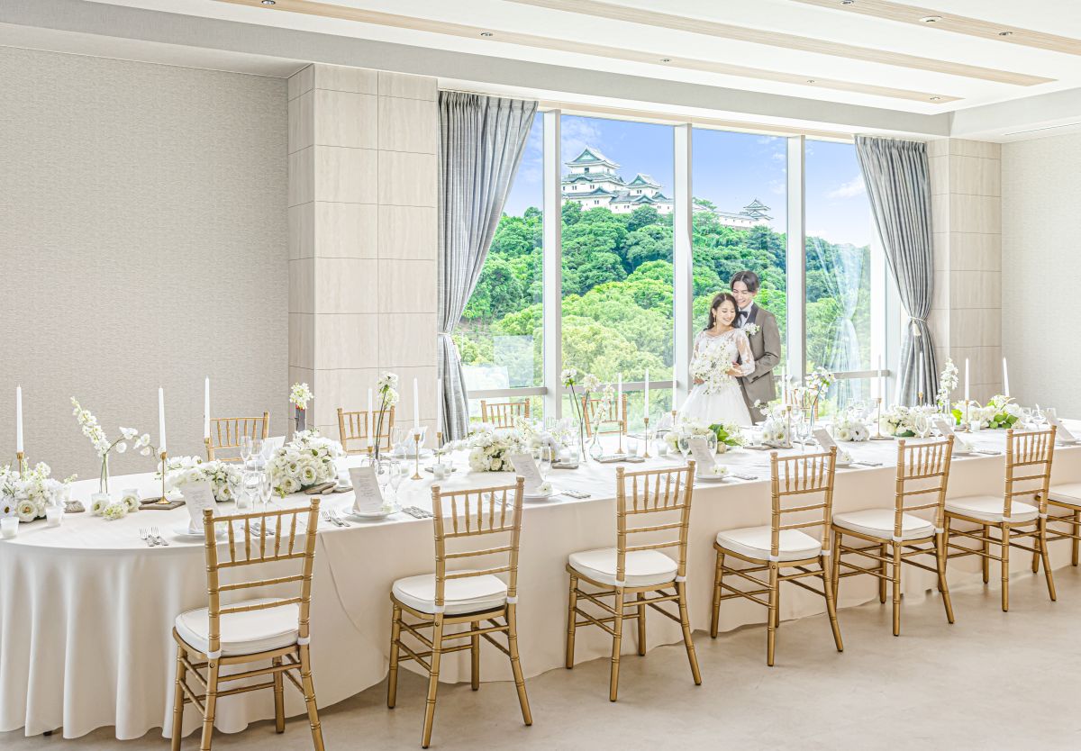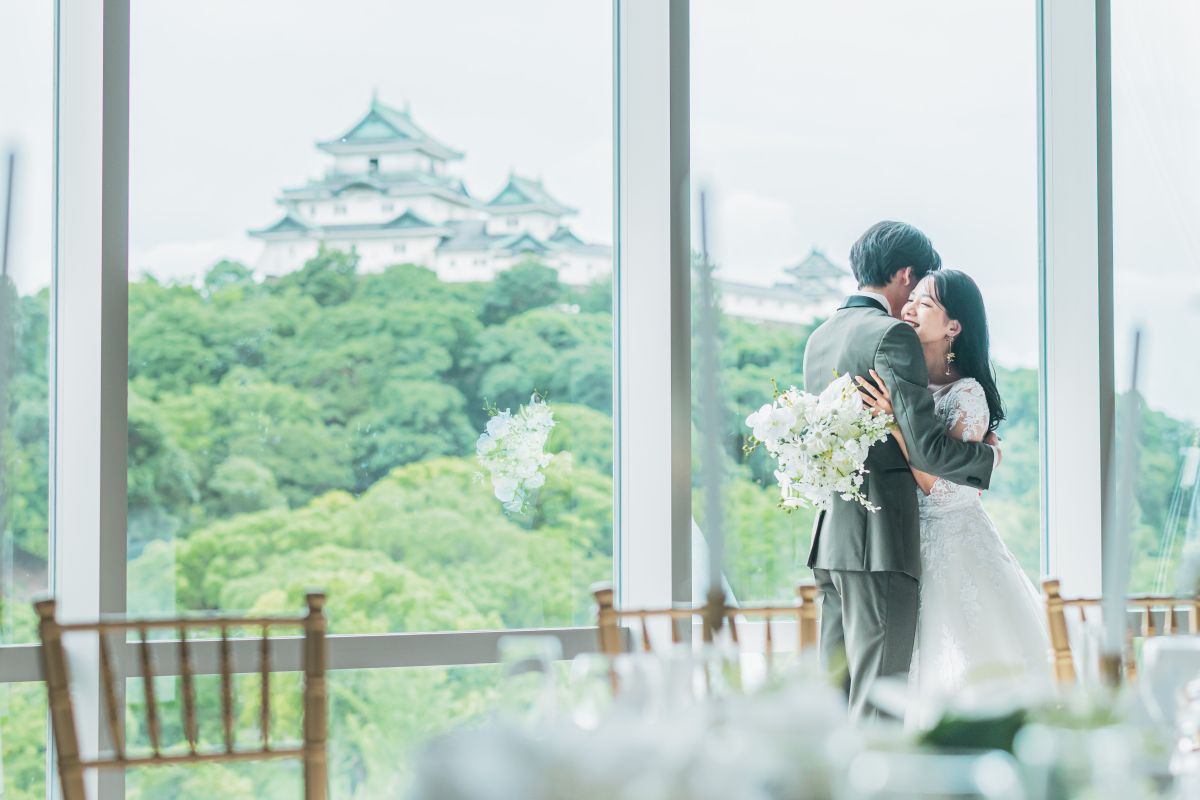 チャペル前のガーデンや、披露宴会場からは和歌山城の天守閣を望む雄大な景色を楽しめます。