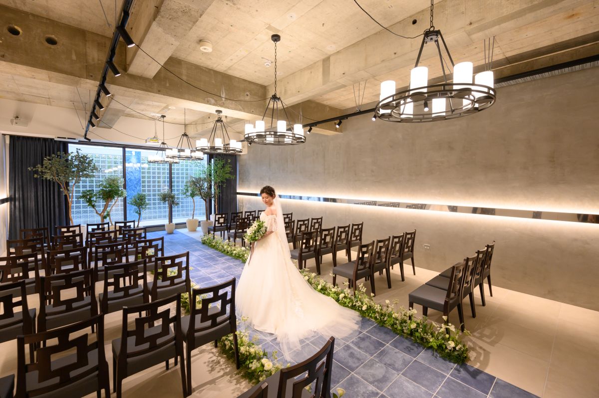 モダンな内装で、和装姿もドレス姿も美しく映えます。