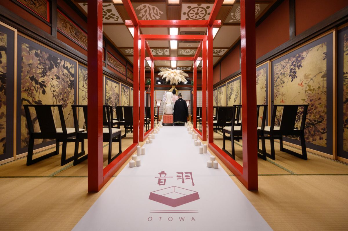 100畳もの広さを誇る披露宴会場。縁側からの入場も行えます。