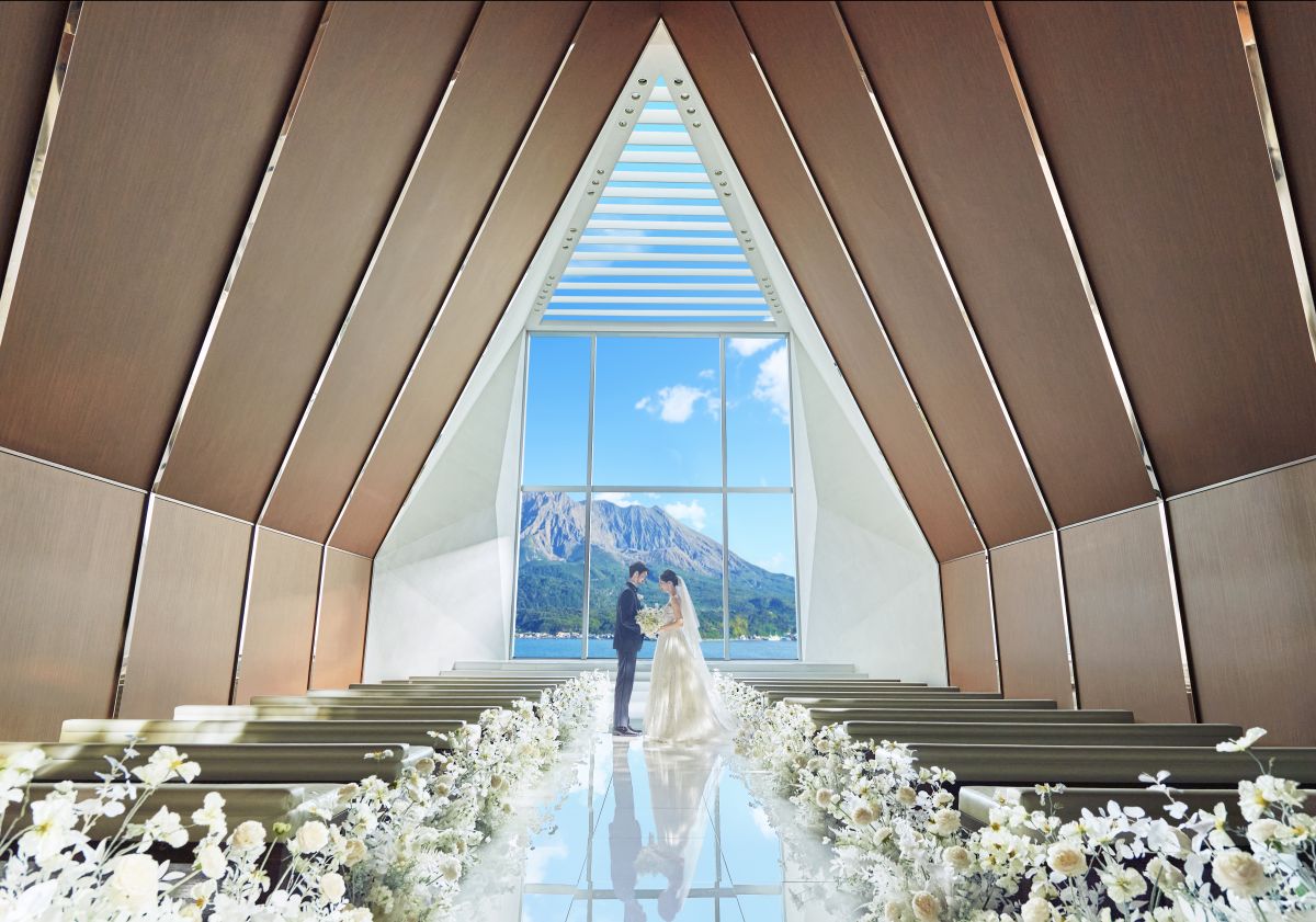 「桜島と錦江湾が一番番近くで見える式場」
