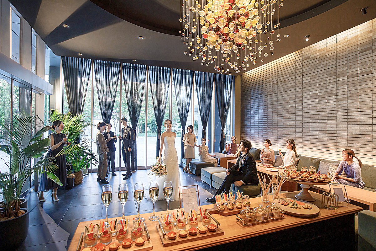 さらに入り口のすぐ近くに広々としたオシャレなウェルカムスペースが用意されているため、結婚式が始まるまでの時間はドリンクを飲みながらゆったりと過ごすことが可能。