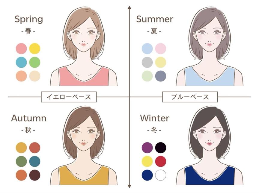 パーソナルカラーとは、肌や瞳、髪の色と調和して、その人を最も美しく見せる色のこと。
