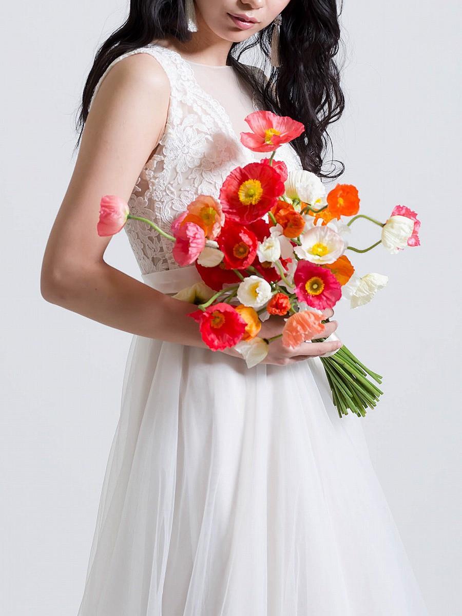 さらに、ポピーやダリアなど質感豊かな洋花ブーケを組み合わせることで、伝統美の中に自分らしいニュアンスが加わり、幸福感あふれる唯一無二のスタイルが完成します。