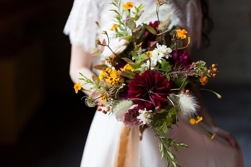 ブーケには、ドライフラワーやテラコッタカラーの花材を合わせるのが正解。