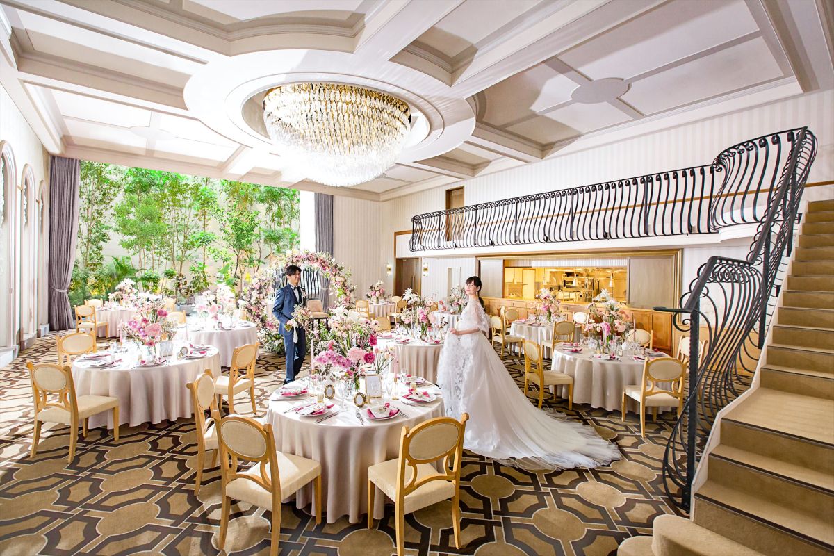 同会場のパーティー会場は、大きなシャンデリアや大階段のある、まさに花嫁が「幼い頃憧れた理想の空間」。
