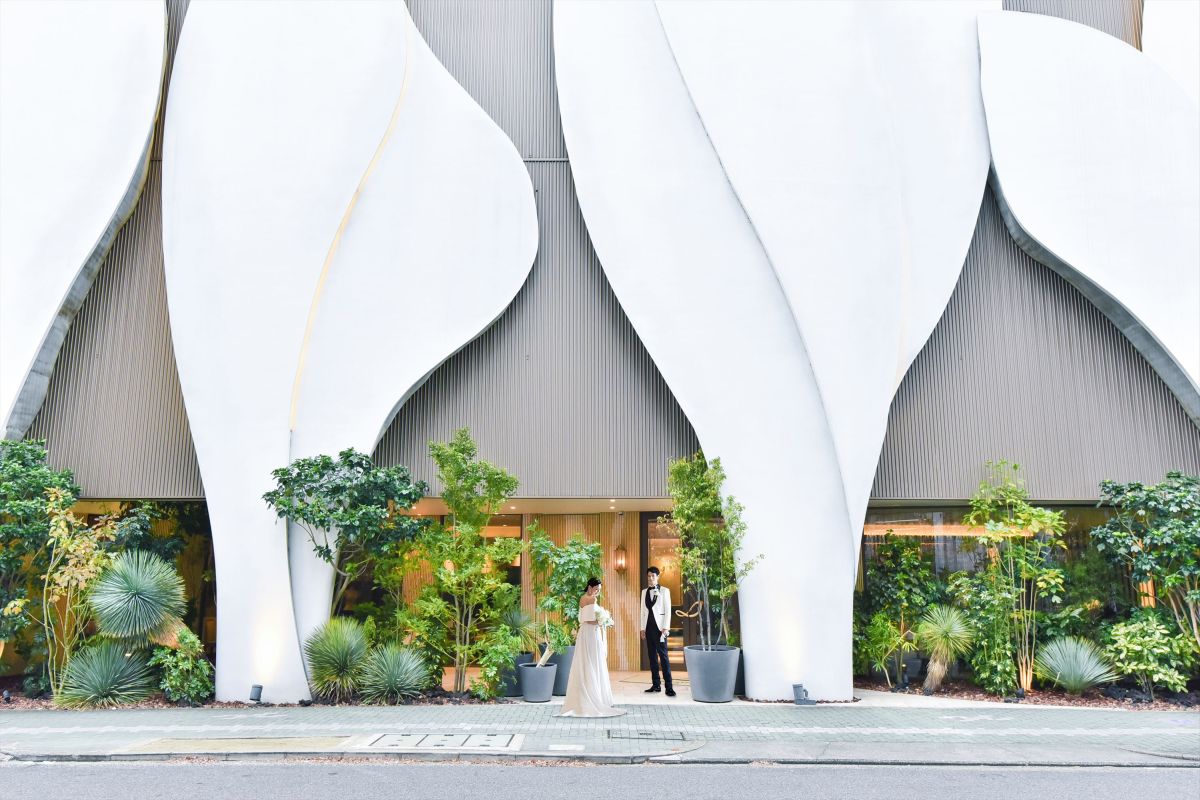 アーティスティックな外観は、これから始まる1日への期待を高めてくれるはず。入り口から特別な1日をスタートできる会場です。