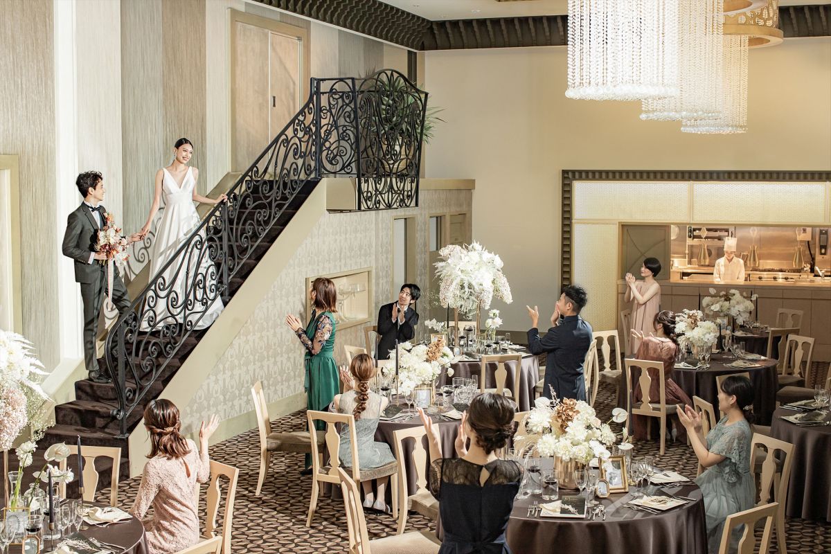 「階段入場ができる会場」と聞くと、ゲストが遠いところから二人を見上げている…そんなイメージを持つ人は多いのではないでしょうか。