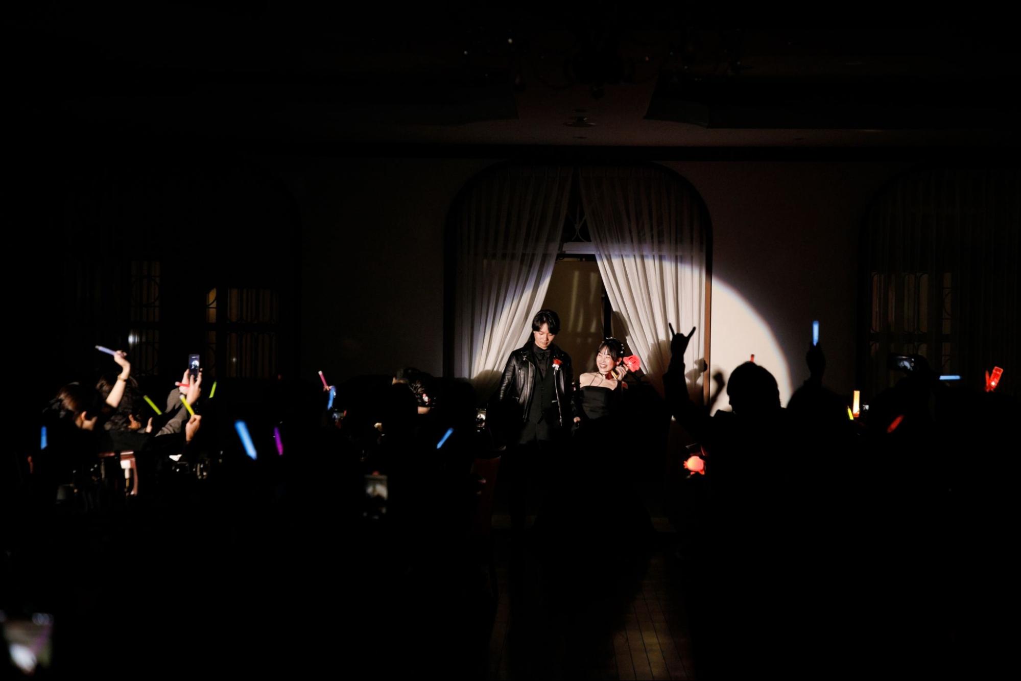披露宴のテーマは「LIVE」で、沢山ペンライトを振っていただきました!