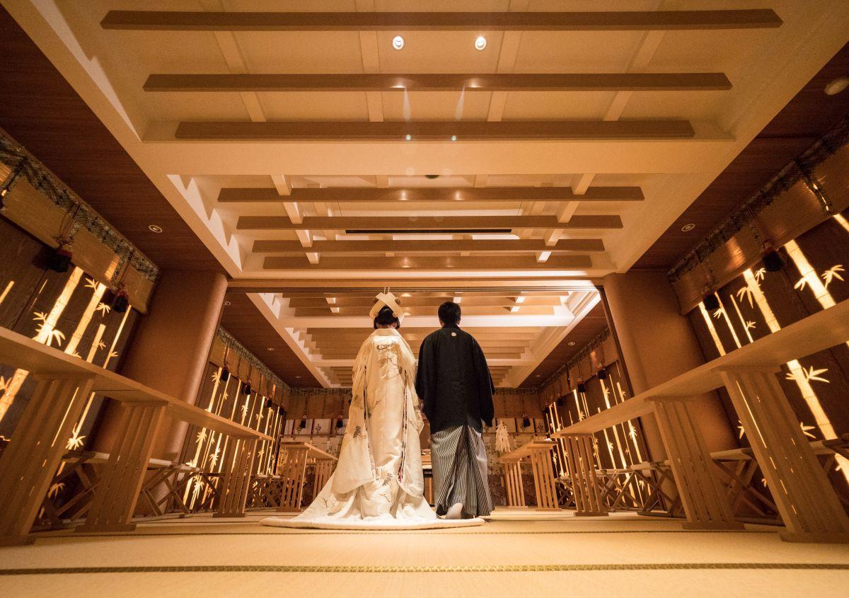 挙式会場は、館内に完備された神殿「出雲殿(収容人数50名)」。