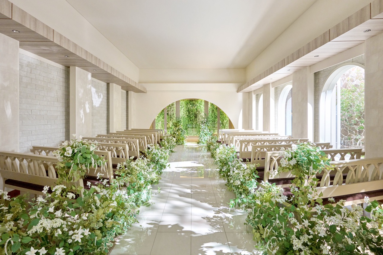 挙式を執り行うのは、温かみのあるホワイトを基調にした「チャペル(収容人数100名)」。