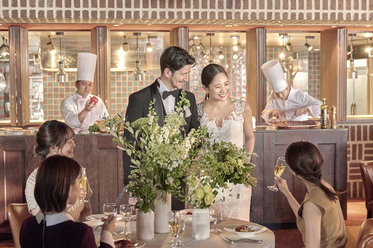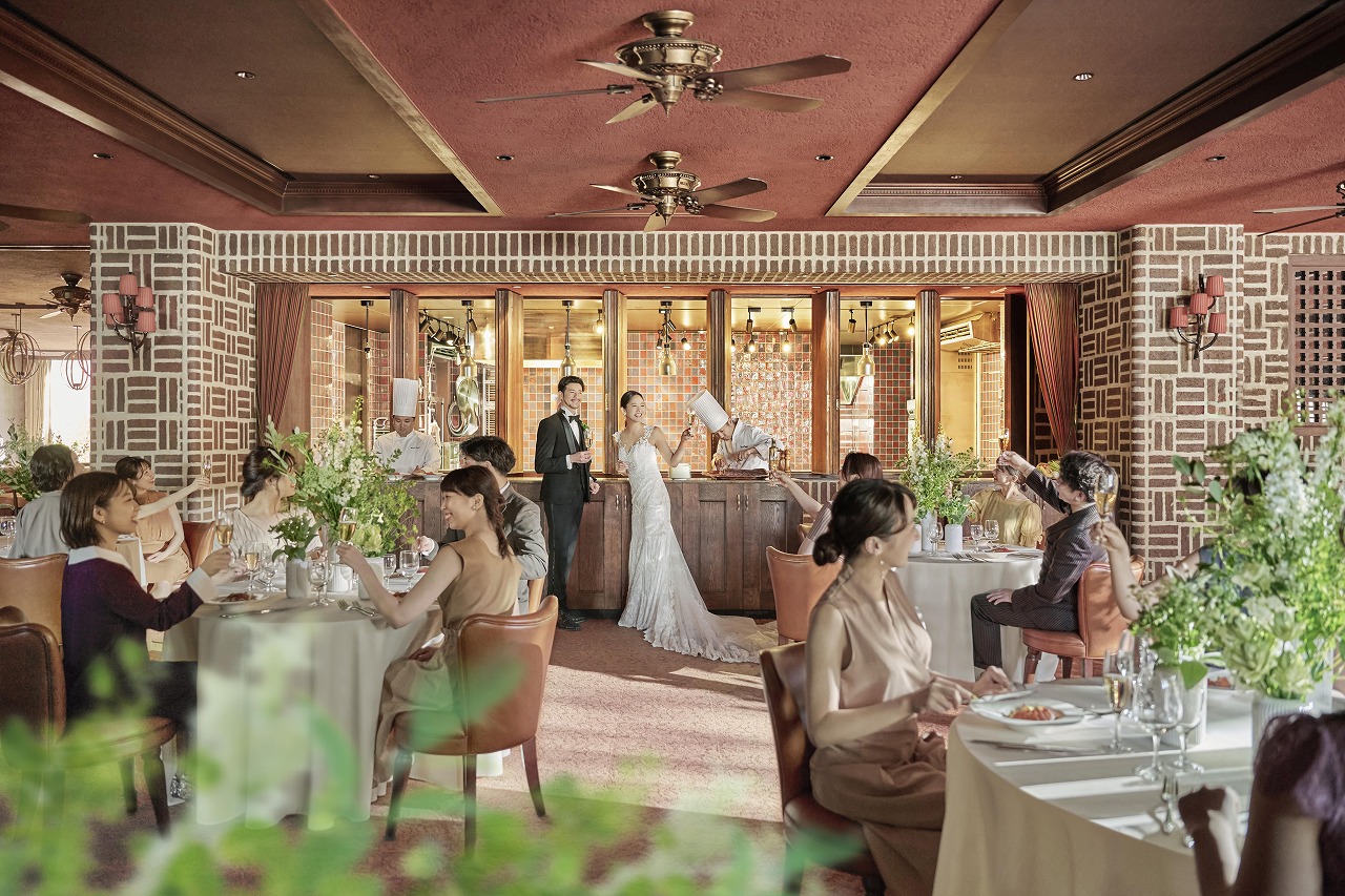オープンキッチンのあるレストラン感覚の会場で、食事を中心に楽しむファミリーウエディングにはまさにぴったり。