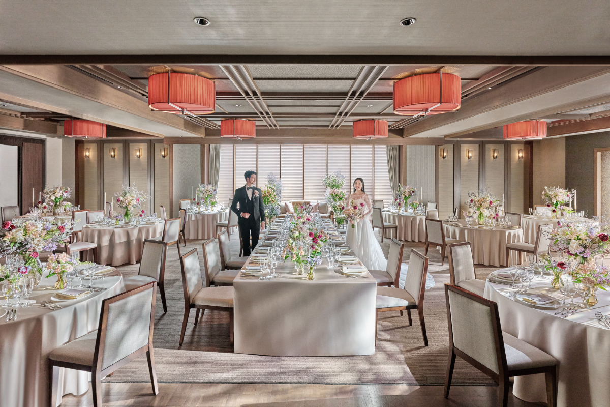 パーティー会場のあるフロア内に関係者以外が立ち入ることがないので、二人もゲストも気兼ねなくゆったり寛げる、贅沢な1日を叶えられるんです。