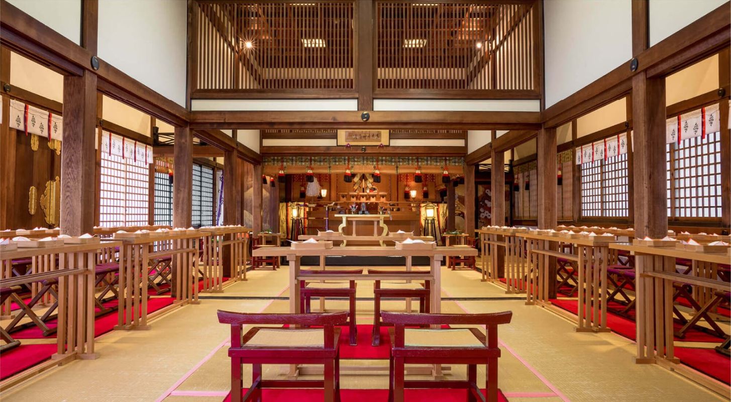 結婚式ではこの本殿で神前挙式が叶います。一般の参拝者は立ち入れない場所とあって特別感を感じられるでしょう。