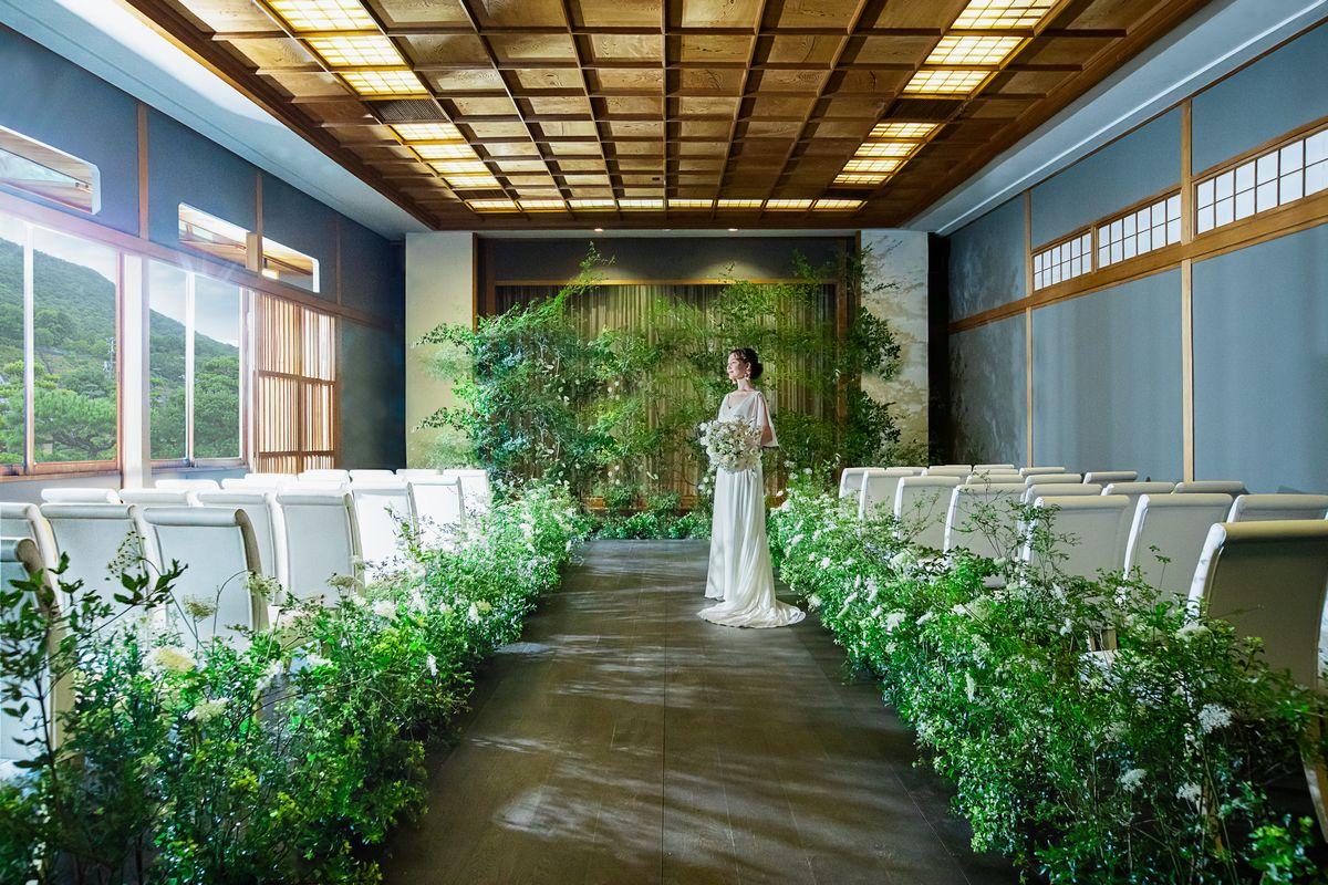 日本建築の美しさを際立たせた和モダンチャペルが「木洩日堂(収容人数80名)」。