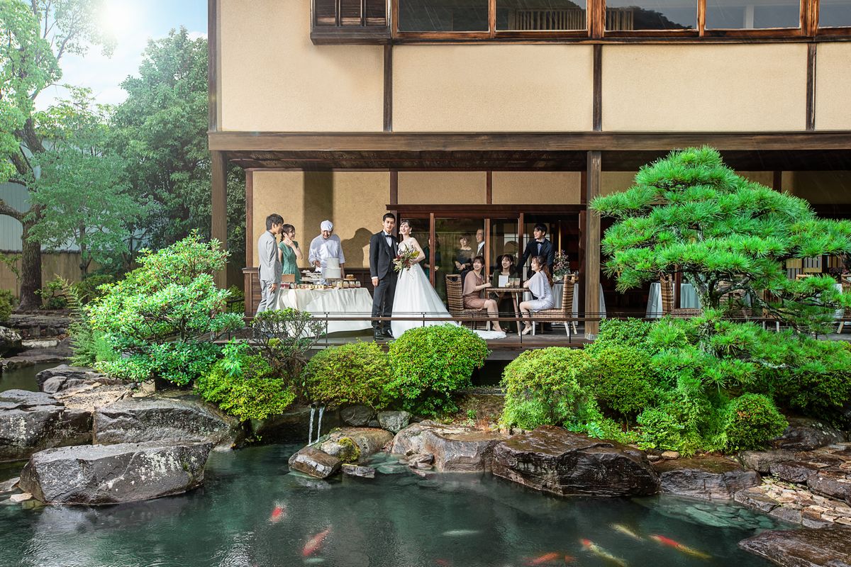 本格的な日本庭園を有する和モダンな書院造の貸切邸宅ウエディング「ザ・ガーデンダイニング弓絃葉」。