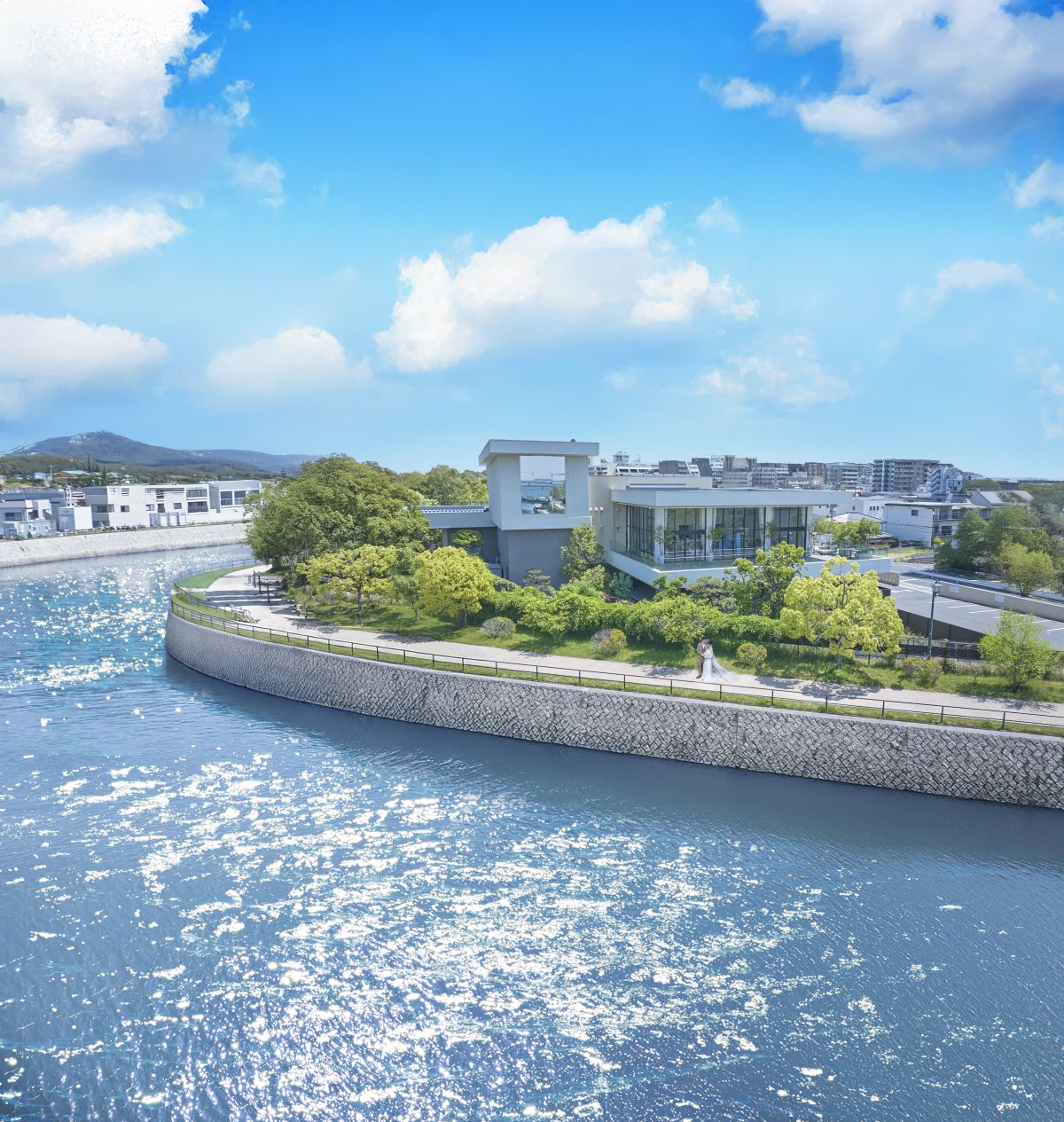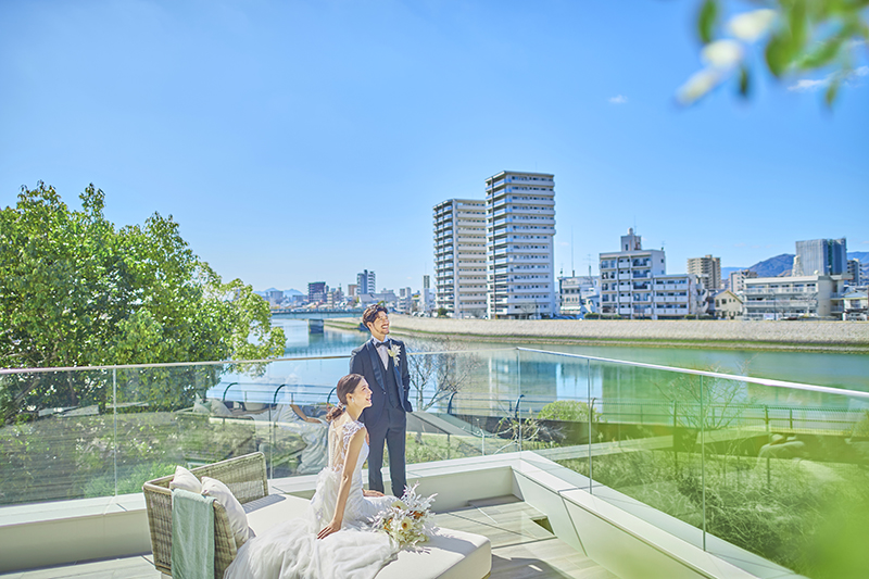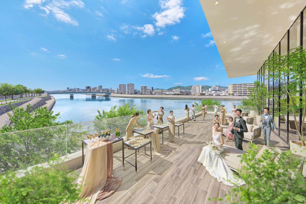 天満川沿いに佇むザ・リバーサイドテラス広島ツリーズスクエアは、緑・水・光に囲まれた結婚式場。