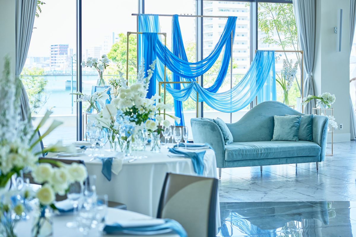 華美な装飾のない洗練された内装のため、純白のウエディングドレスはもちろん、カラードレスや和装とも好相性。