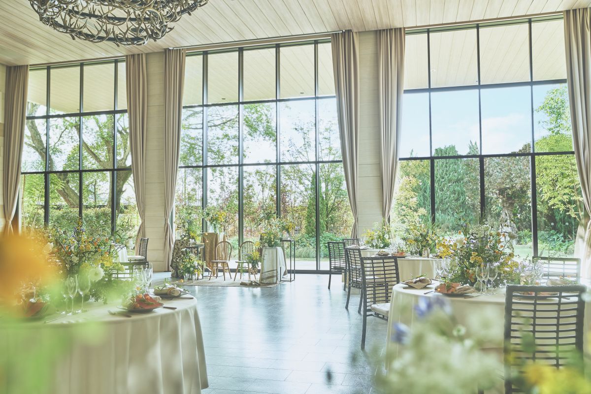 緑豊かなガーデンに隣接している披露宴会場。