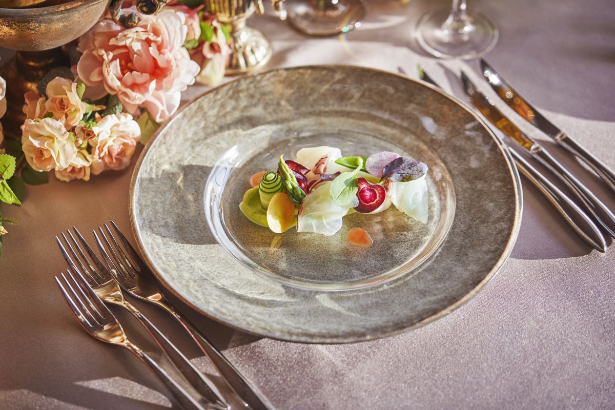 料理は、結婚式にぴったりな華やかなフレンチに日本の繊細さをとり入れた“フレンチジャポネ”をご用意。