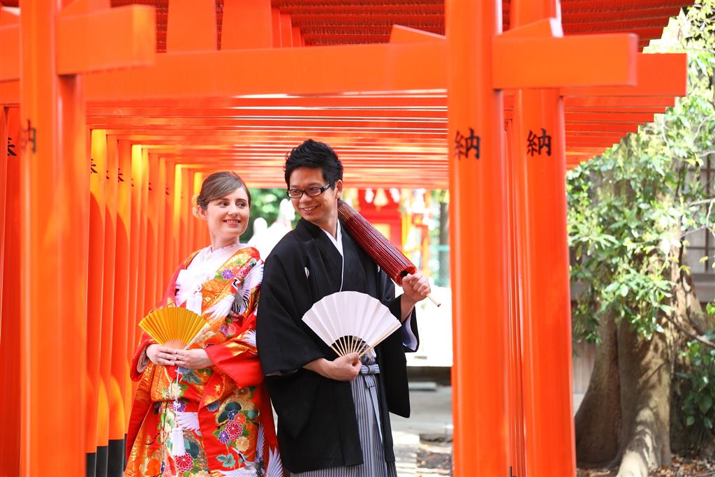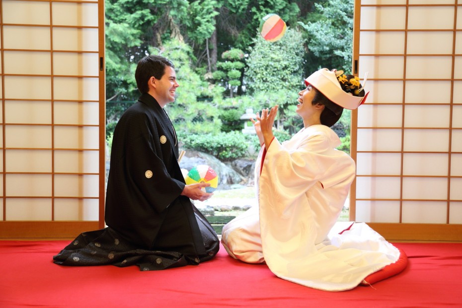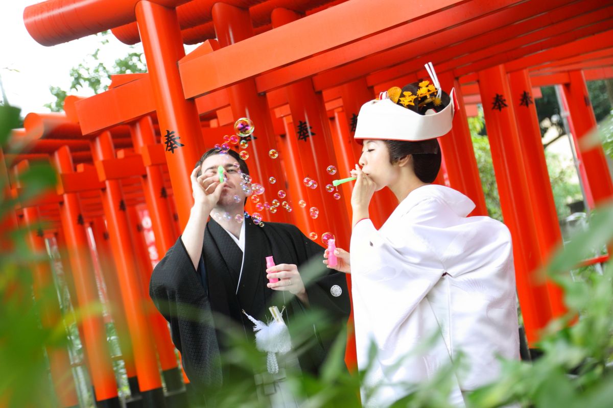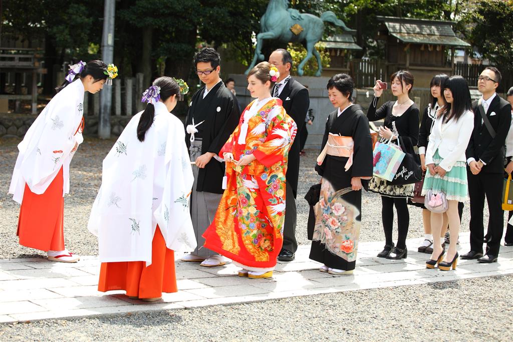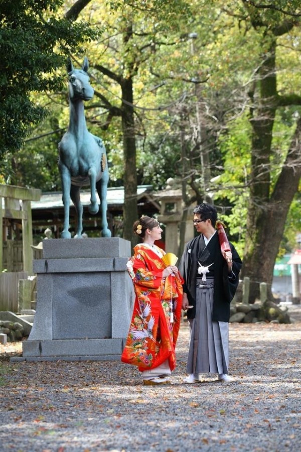 そんな美しい景色の中執り行う「参進(花嫁行列)」は格別。国際結婚のカップルにも人気の神社です。