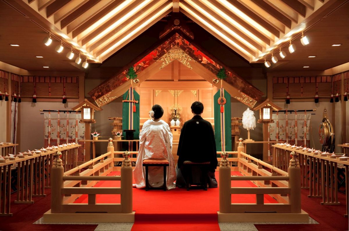 挙式会場はチャペルの他に、東海三県のホテルの中でも最大級の規模を誇る神殿を完備。