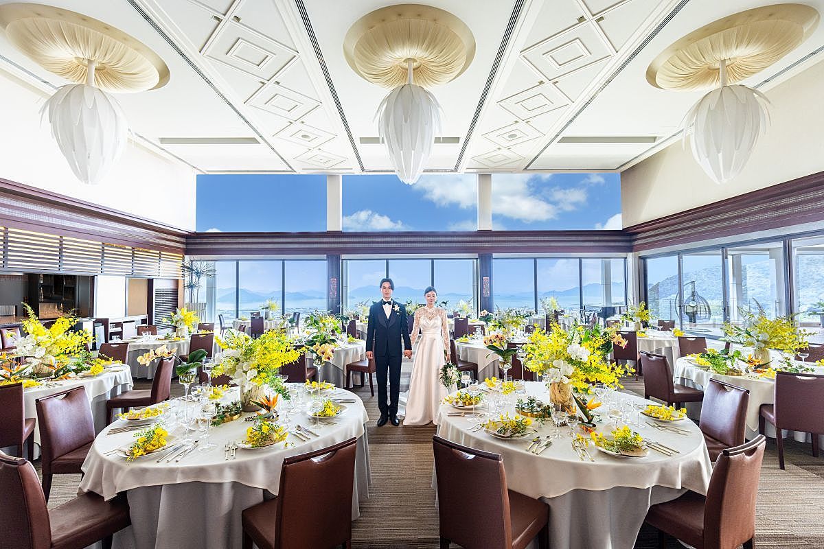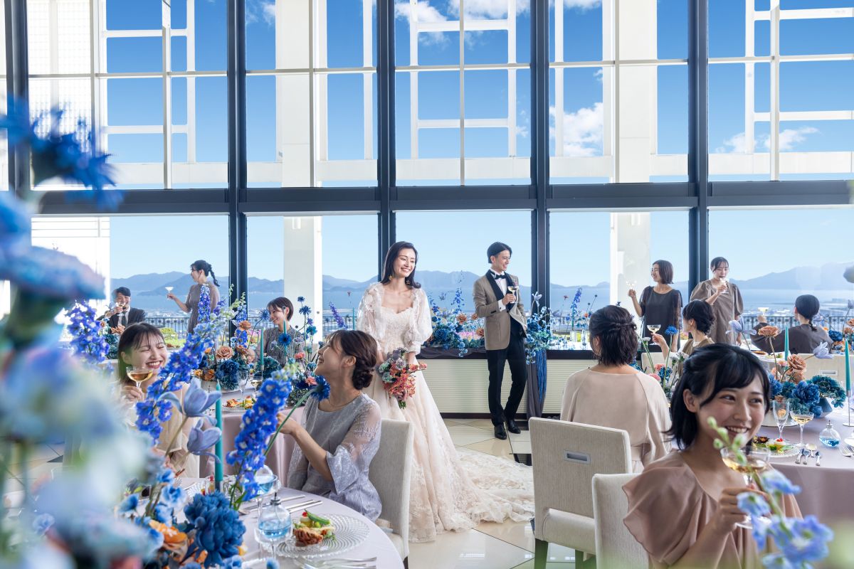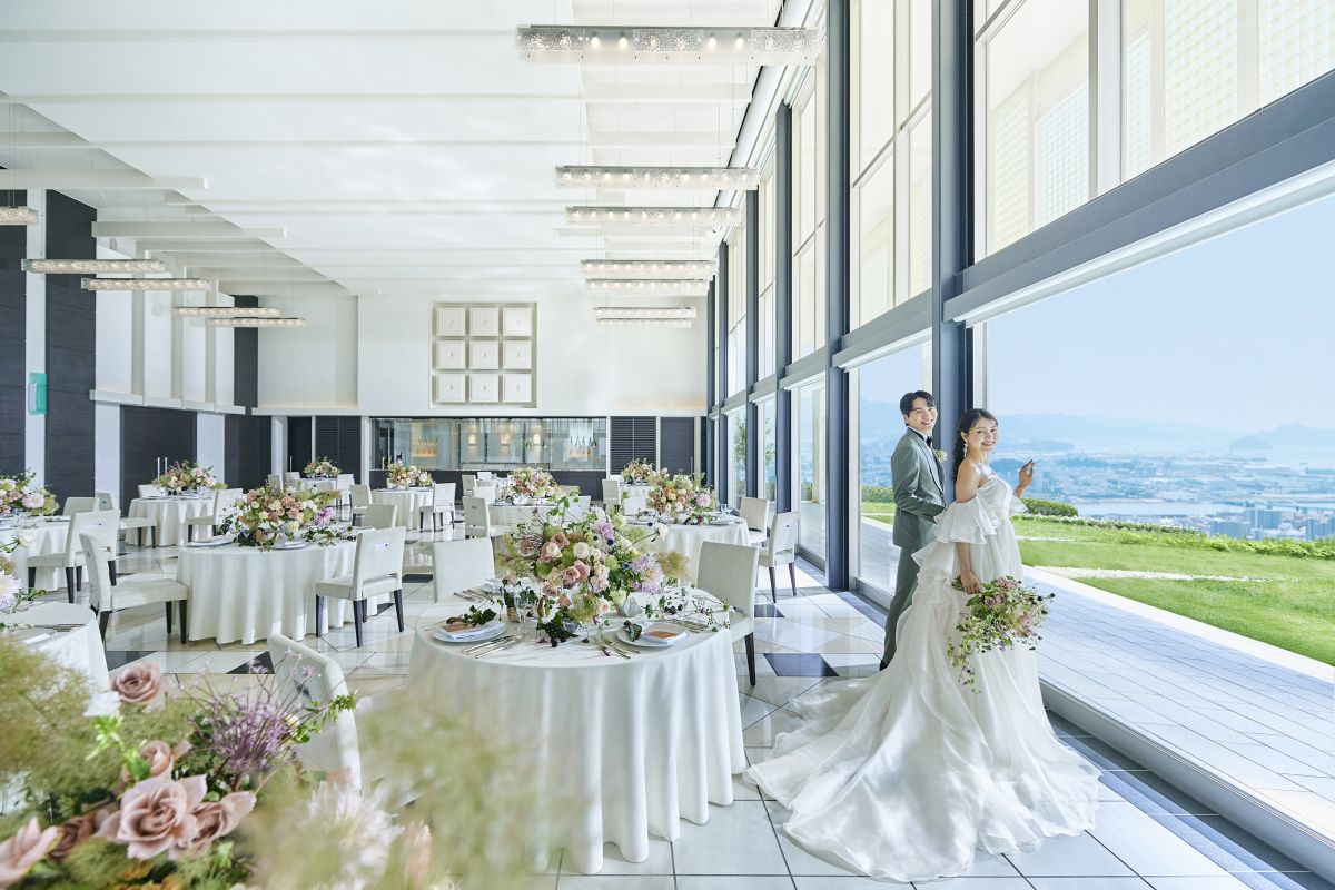 広島市街から30分で、ここまで空が近く、海が広く感じられる式場は、そう多くはありません。