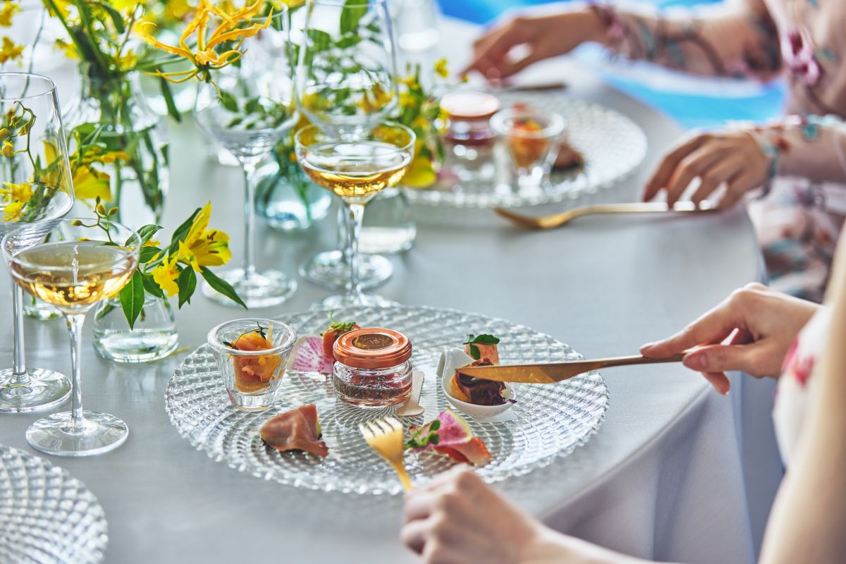 見た目はアーティスティックで華やかながら、どんな年代のゲストにも愛される内容。全てのコースでお箸が提供される点も喜ばれています。