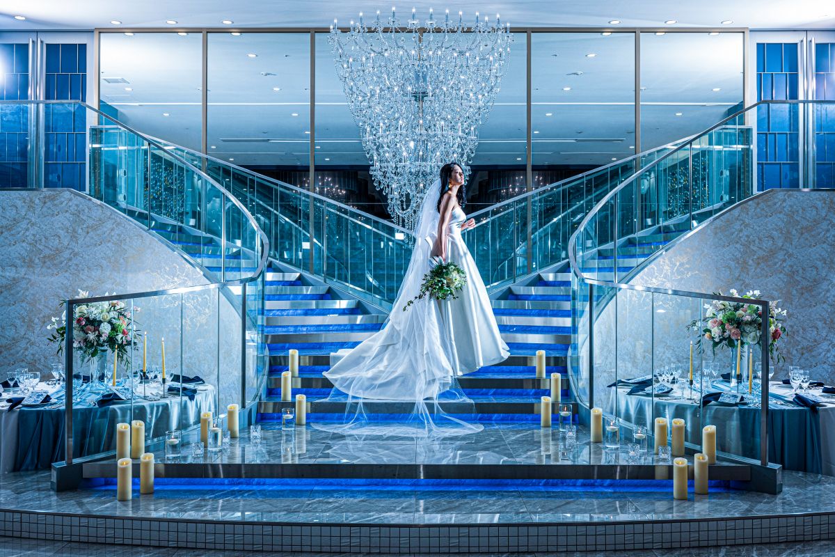 こちらも白を基調とし、階段やシャンデリアがロマンティックな空間。