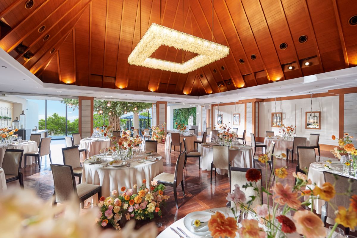最大110名収容できる「モンスーンヴィラ」は、室内に大きなシンボルツリーが植えられている会場。フォトジェニックなグリーンウォールなどが備え付けられた、木のぬくもり溢れる内装になっています。