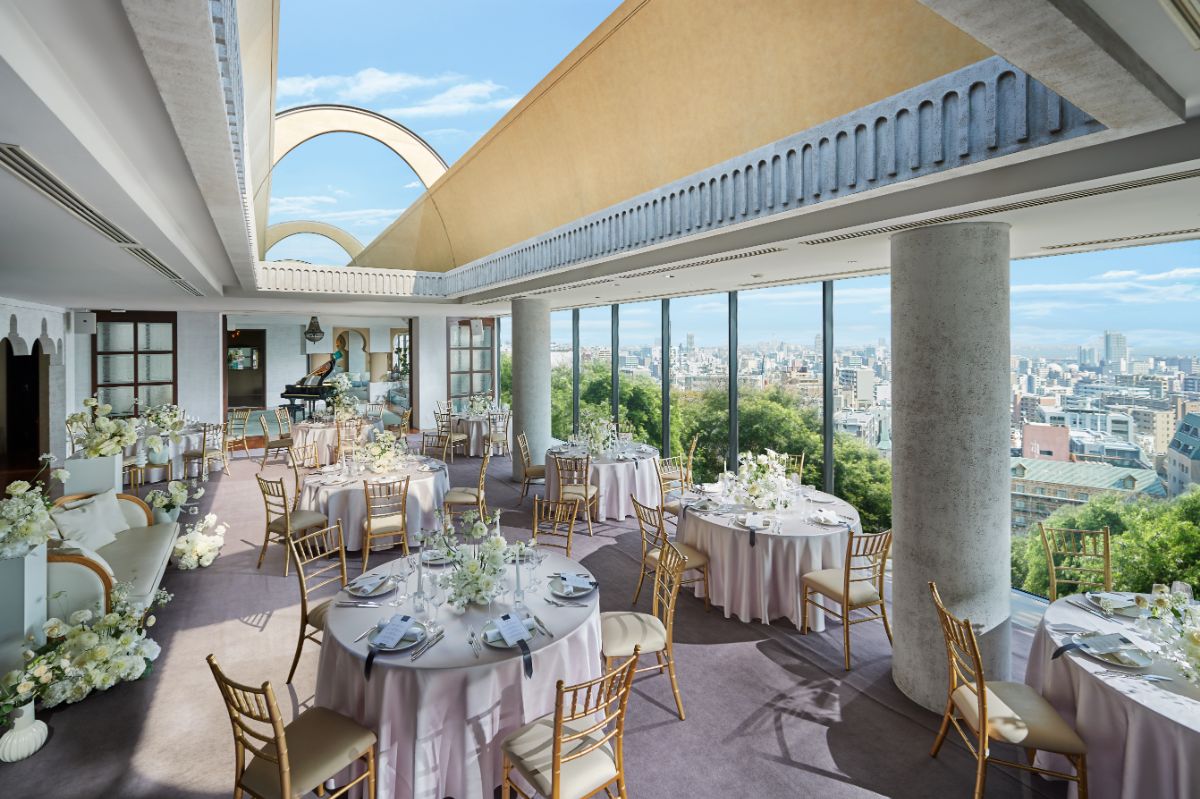 「ミラージュヴィラ」は挙式を行う「天空の教会」と同じフロアにあり、神戸の街並みを一望できる会場です。