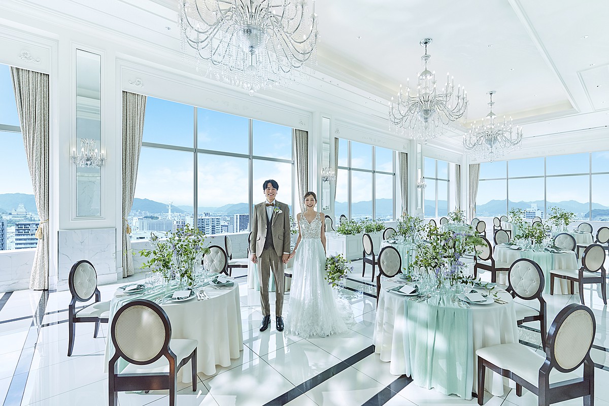 【姫路駅直結】姫路の街並みをパノラマビューで飾る最上階の絶景チャペル。豊かな緑と自然光に満ちた温かみのあるホテルウエディングが叶います。