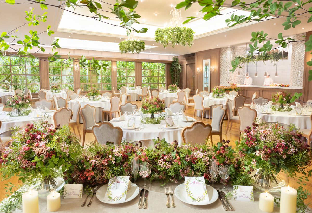 『ザ コンチネンタル横浜』を運営する「ブライダルプロデュース」の全式場でとったアンケートから、今お客様が求めている会場を追及した結果、自然光がたっぷり降り注ぎ、緑があふれる空間にたどりついたそう。