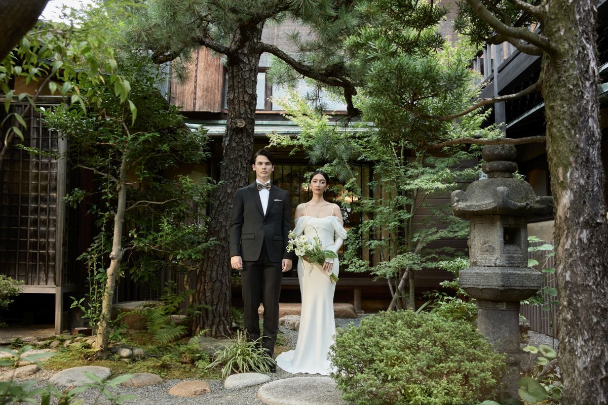 1870年に創業した純和風建築の老舗料亭旅館「鮒鶴(ふなつる)」をリノベートした同会場は、伝統美とモダンデザインが調和する洗練された空間でドレスとも和装とも好相性。