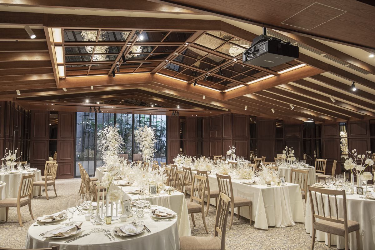 披露宴会場は2つ。最大110名収容の「KATARAI」はダイナミックな天井装飾が印象的で、最大56名の「FURUMAI」は大きな窓から注ぐ柔らかな自然光が魅力の和モダン空間。