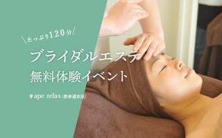 【最新情報】極上の癒し&美しさへ ape relaxブライダルエステ無料体験イベント開催のお知らせ