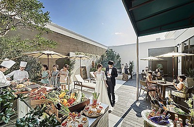 シェフがゲストの目の前で焼いてくれるBBQスタイルも人気の会場で、ゲストとの距離も近くなるカジュアルな1.5次会をご紹介☆デザートブッフェなども可能なので、たくさんのゲストを一緒に幸せな時間を過ごせるはず!