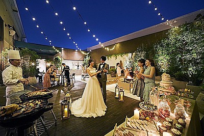 テラスを使用してBBQスタイルも楽しめる1.5次会プランでアットホームにゲストとわいわい楽しみたいならこれっ♪