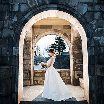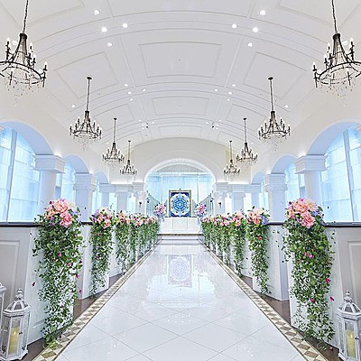 豪華なシャンデリアが輝くロビーやヨーロッパの洋館のような佇まいの会場で叶うクラシカルで落ち着きある結婚式。大理石のバージンロードにサムシングブルーをイメージしたステンドグラスが美しい荘厳な白亜のチャペルでクラシカルなウェディングが叶う